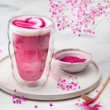 This Instagram-worthy latte swaps matcha’s green hue for a vibrant pink, using beetroot, rose, or berry infusions. Both wellness influencers and café-goers love its visual appeal and mild floral flavor.